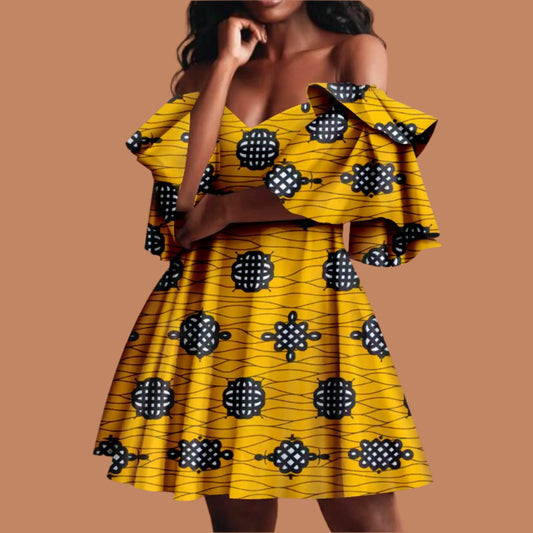 NNEKA Women`s African Print Off Shoulder Mini Dress