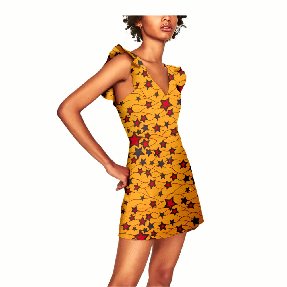 NNEKA African Women's Sleeveless V-Neck Summer Mini Dress