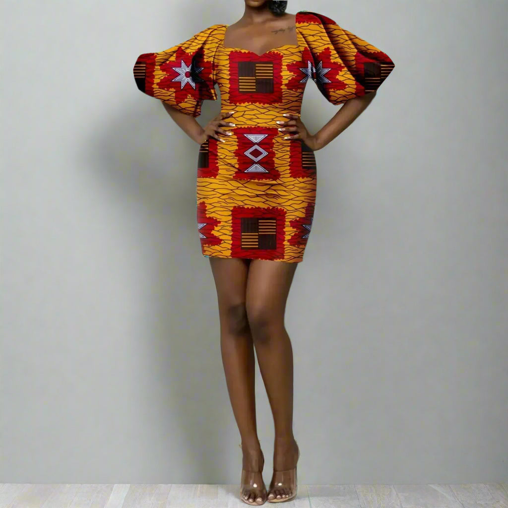 NNEKA Half Sleeve Strapless Ankara Print Dress